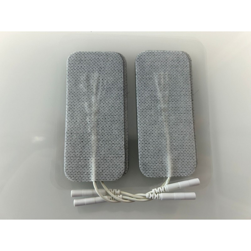 Confezione di 4 elettrodi di superficie adesivi e conduttivi, monopaziente, con cavetto da 2 mm, 40x90 mm.
